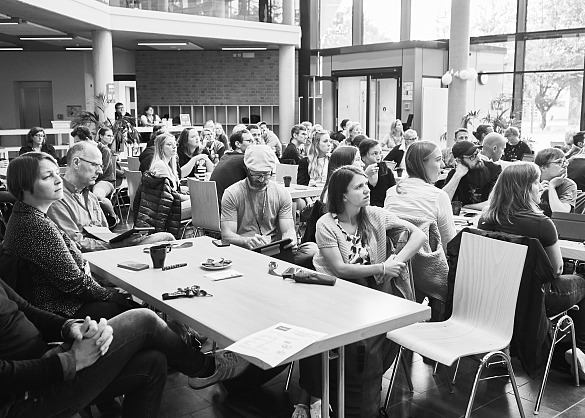 Die jeweiligen Themen werden parallel in ‚Sessions‘ (Workshops oder Diskussionsrunden) vorgestellt, bearbeitet und diskutiert. Es können Ideen geteilt, Probleme diskutiert, Projekte vorgestellt, mitgebrachte Aufgaben bearbeitet und offene Fragen gestellt werden.